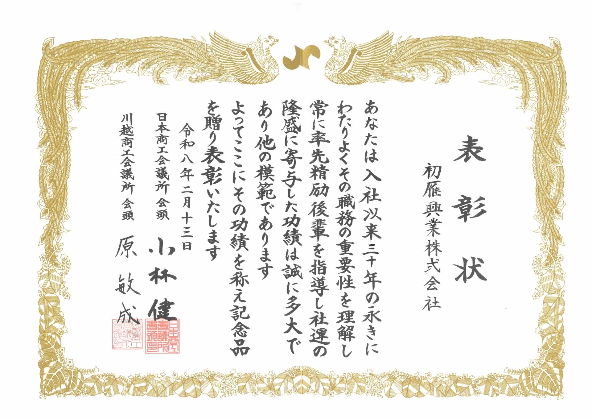 川越商工会議所 優良従業員表彰式